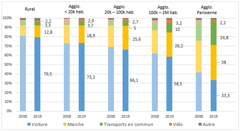 Sources : SDES, Enquête mobilité des personnes 2018–2019,