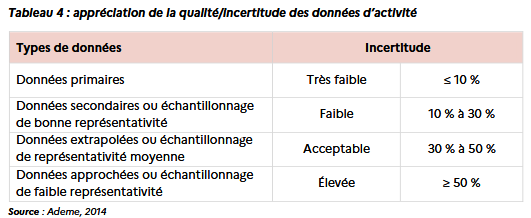 La qualité des données d'entrée peut donner lieu à des catégorisations utiles également à la quantification telles que des déclinaisons :
